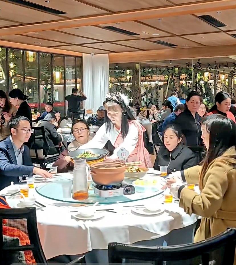 《时光旅行》以梅超风、黄蓉等武打人物为主角。通讯员供图:楚天都市报集木新闻(记者:周萍莹、实习生:孙雪琪)“梅超风”用9寸白骨丁揉面团,“柯震”现场拿勺子……近日,湖北襄阳一家武术主题餐厅发布的短视频迅速走红网络。 互联网上,吸引了很多慕名而来的顾客。沉浸在江湖的强大氛围中。当夜幕降临时,已是晚上7点左右。米。 10月26日,武术主题餐厅灯火通明。进入其中,犹如进入江南花园,亭台楼阁,流水潺潺,风景怡人。表演区,金庸、郭靖、黄蓉、梅超风三位人物演绎精彩的打斗场面,一场长达约90分钟的沉浸式表演据悉将于6点30分开始晚上在餐厅。金庸笔下的柯镇恶、梅超风、黄蓉等武侠人物,以及诸葛亮等历史襄阳名人在舞台上“走动”,给观众带来超越时空的视听体验。 “我们邀请江南七怪,邀请更多的人来襄阳,吃在襄阳,玩在襄阳。”据餐厅工作人员介绍,距离2025年9月21日餐厅开业已有一个多月了,除了现场表演外,“梅超风面”、“柯镇峨炒菜”等有趣片段也被拍成短视频发布在社交媒体上。平台,引起广泛关注。演员们在庭院里走来走去,偶尔还有互动。当他的客人在走廊里发现“柯震儿”在刷手机时,只见他拿着一根魔杖,白发,闭着眼睛,慢慢地转过身来。声音却是一脸严肃的说道:“看着我的眼睛!”强烈的反差引起现场嘉宾的阵阵笑声。演出于晚上 8:00 结束每个晚上。路灯依然闪亮,江湖气息依旧。这家将武术与当地文化相结合的餐厅正逐渐成为襄阳夜间文化旅游经济的新名片。
