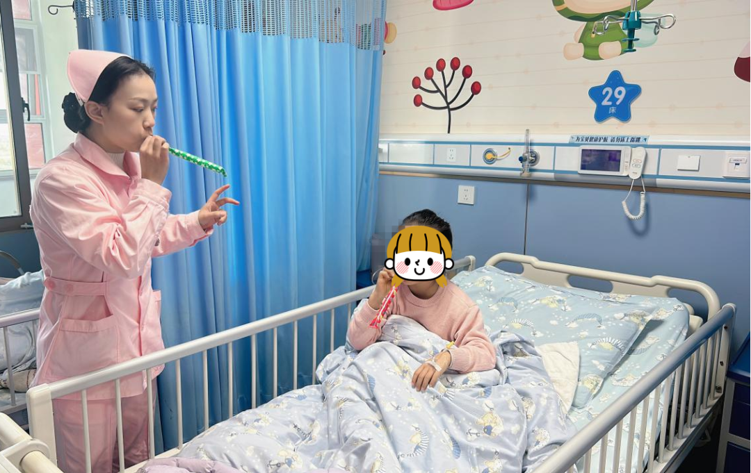 “现在,吸气1、2、3,呼气1、2、3,慢慢呼气……”胡一萌轻轻喊出命令,用一根长长的彩管示范。这不是简单的游戏互动,而是专为儿童设计的有趣的循环和主动呼吸技巧教学。我们把职业康复训练变成“吹吸管挑战”,让孩子在轻松的环境中自然掌握呼吸频率控制技能。这种寓教于乐的方式不仅有效训练了孩子的呼吸肌功能,还帮助他们消除了呼吸困难。痰,也成功消除了疾病治疗带来的无聊和焦虑,让病房里的康复训练充满了欢声笑语。