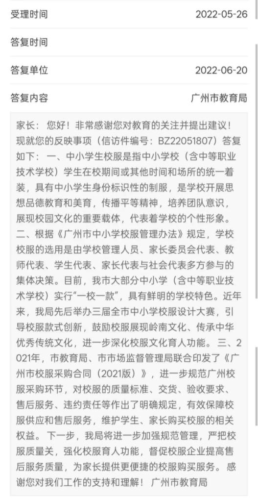 广州市教育局坚持“一校一模式”并非主观决定,而是经过充分研究的理性选择。在2024年7月对政协提案的回复中,该市教育局表示:“目前,我们无意在全市推行统一校服,也无意优化‘一校一模’模式。”这一结论并得到了对22万名学生和家长的调查的支持。