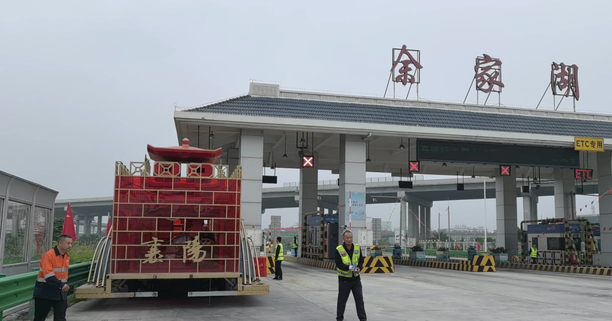 当日上午8时10分,国庆高速已达到堵车高峰的“向阳向阳”花车在押运车和拖车的牵引下缓缓驶入于家湖收费站。但由于花车太宽太长,无法正常通过,无法到达巷口。后面等候的车辆渐渐陷入困境,现场交通压力迅速增大。面对紧急情况,于家湖收费站值班班长迅速反应,为后方车辆开辟专用通道绕行,避免交通进一步拥堵。同时,他立即向值班组长汇报情况,并通知专案组赶赴现场求助。值班领导和机动人员赶到现场,组成临时应急小组。团队成员与花车运送人员充分沟通,迅速制定了转运方案。我们首先将拖车和浮车分离,在浮车上安装临时电机实现自动运行,同时将原来的超宽自助通道改为手动操作,确保浮车通过过程安全可控。
