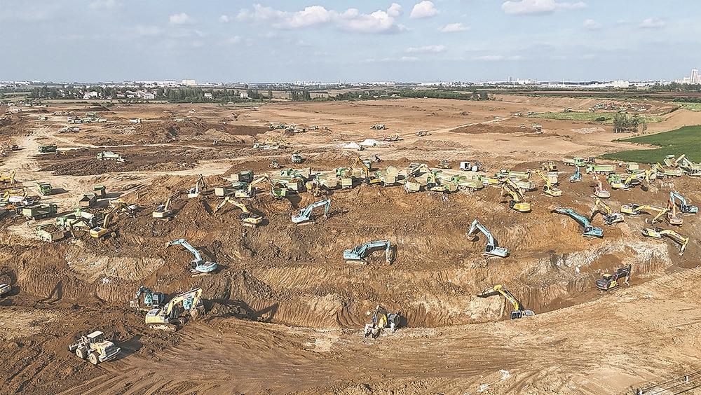 春能襄阳项目现场,350台机器正在清理土地。全媒体记者王虎乔森耀通讯员任传喜供图